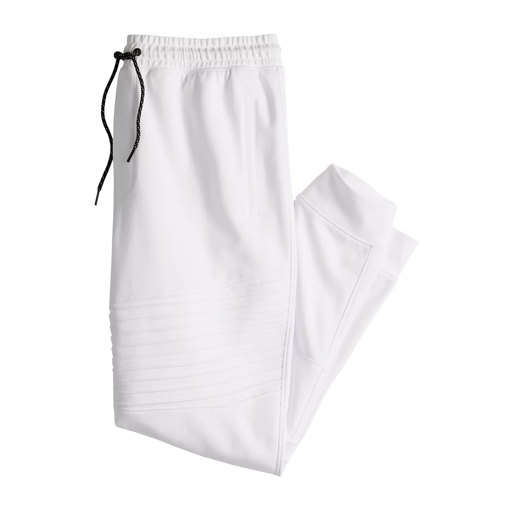 Get your active wardrobe on the right track with these men’s Tek Gear moto jogger track pants.Meet the Designer: Barbara Clarke RuizAn innovative designer with 20+ years of experience crafting fashion-forward designs for the active/sportswear industry, she brings her inclusive vision and bold expression throughout this collection.