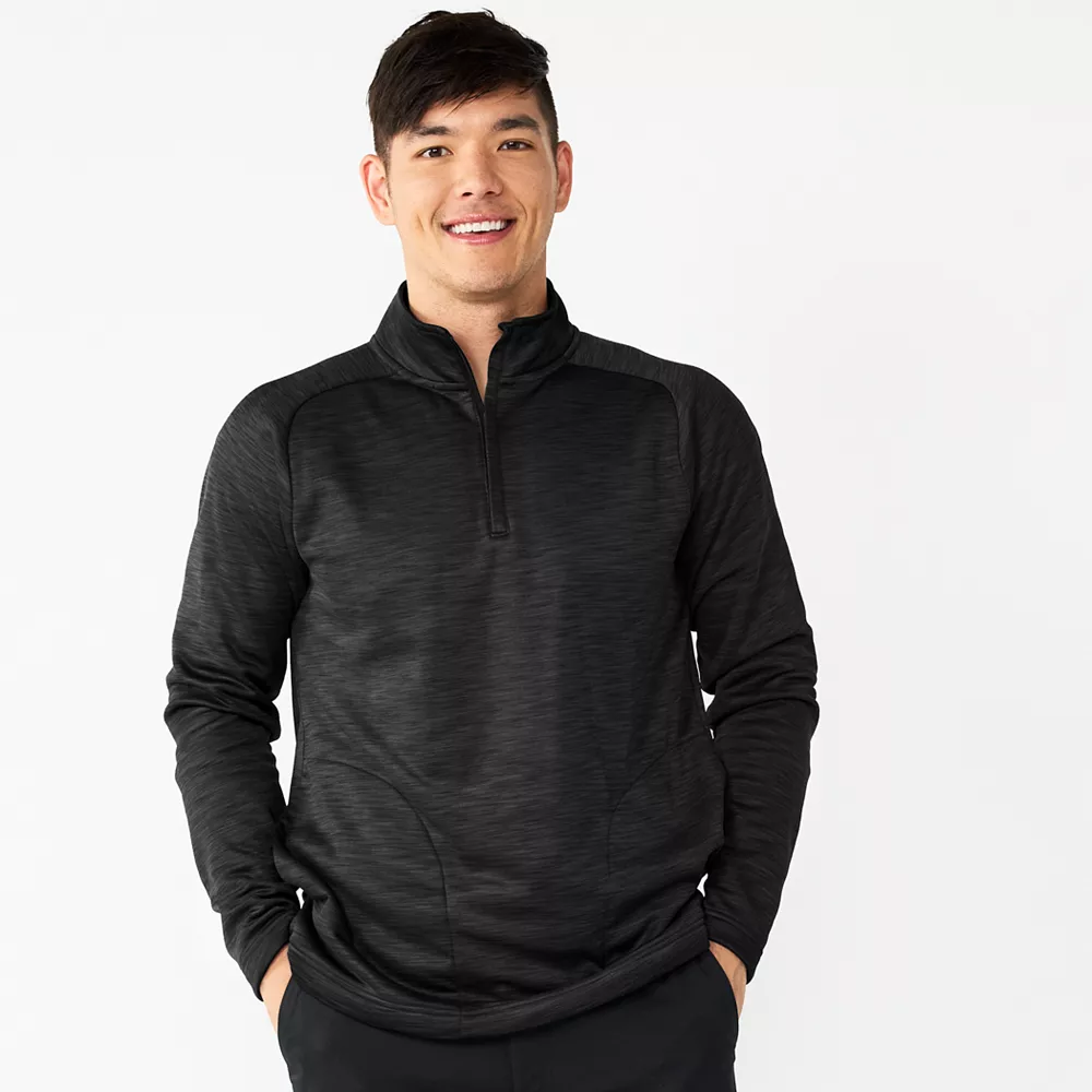 Stay warm and comfy on or off the golf course with this men’s Tek Gear quarter-zip fleece top.